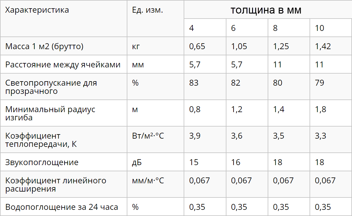 имеют UV-слой 50 мкм, благодаря чему материал сохраняет свои физико механические характеристики; гибкость — листы WÖGGEL легко гнутся при монтаже в соответствии с формой конструкции и в соответствии с нормами изгиба; теплоизоляция — применение поликарбоната WÖGGEL в качестве стенового ограждения и покрытий сооружений сокращает расходы на отопление примерно на 30% (по сравнению со стеклом);